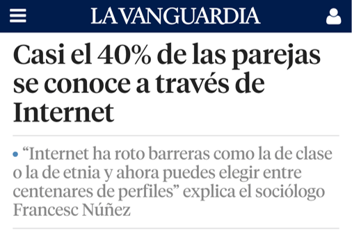De hecho, las estadísticas dicen que el 40% de las parejas se conocen en Internet.